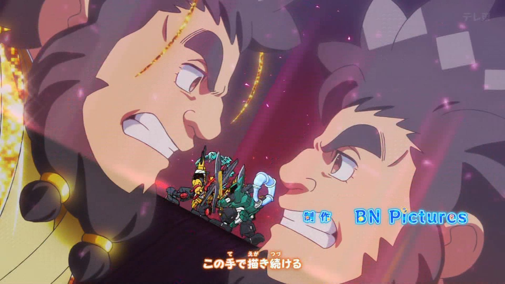 魔神創造伝ワタル 第13話 雑感 ワタ×カケいいゾ♂ アニメ X Facebook はてブ LINE コピー 2025.04.06 2クール目に新OP。しかもしっとり目。うんいいね。SEも最高。ワタルとカケルそれぞれの機体を直すべく珍道中。いつも通り脚本おかしくて助かる。 カケルくん提案のスクラップ&ビルドで皇龍丸完成である。かっこいい。ワタルも作り直しやね。が武器作ってなかった?と思ったらマロちゃんからのプレゼントなのら。で龍王丸も完成。うん強い。カケルくんも杉田に選ばれた救世主だった。良かった、仲間外れにされんで。とそこへオンライン先生である。BANあるのか。
