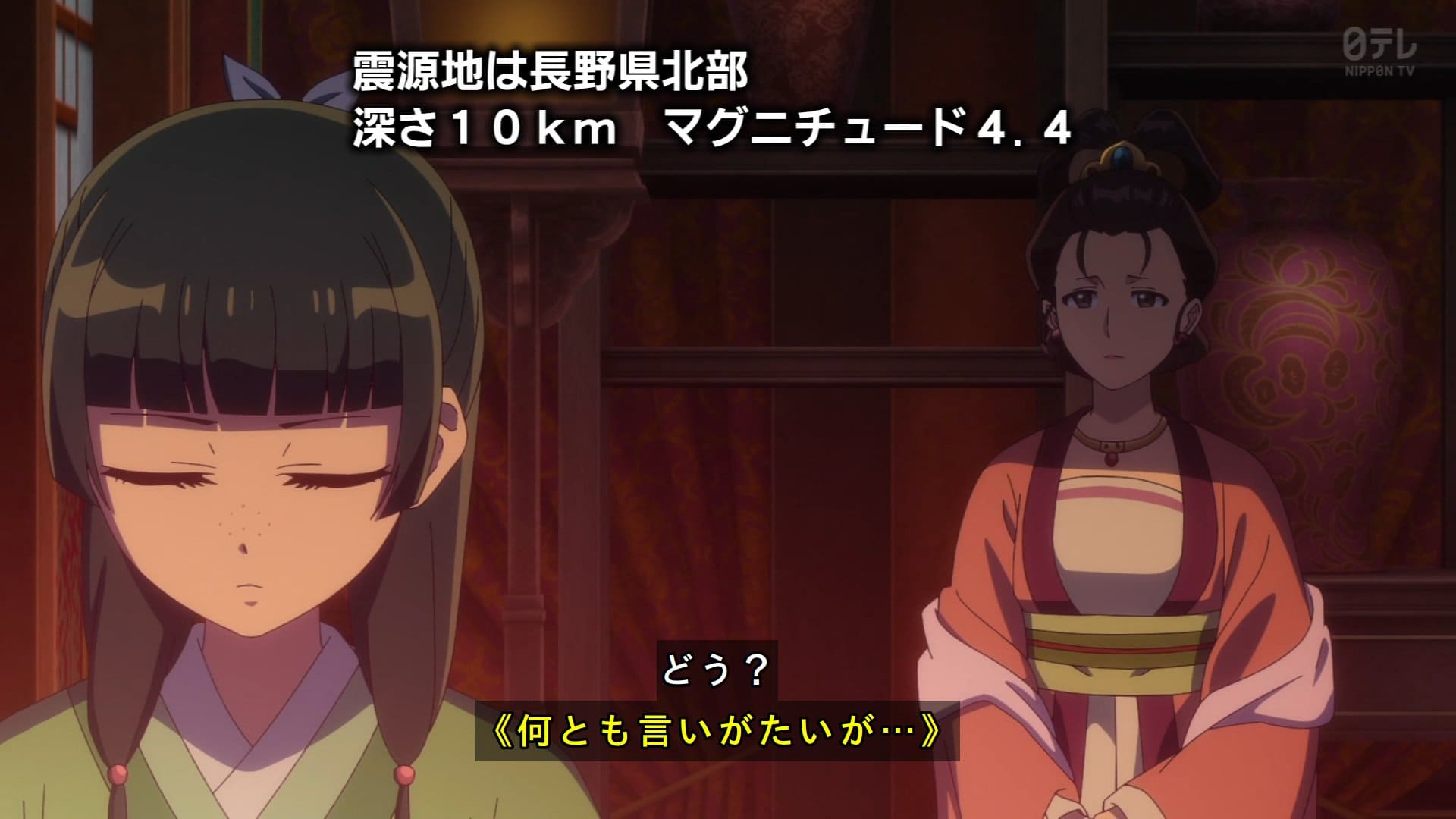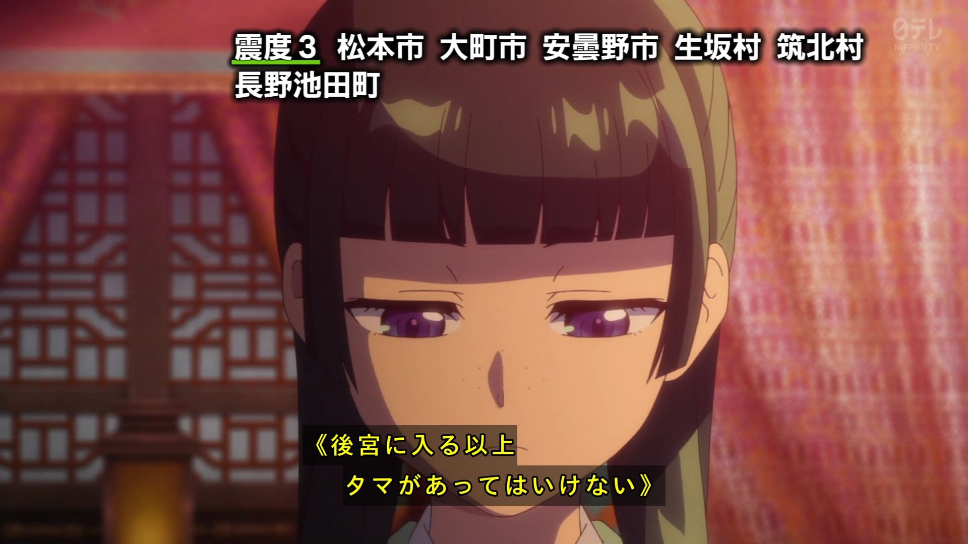 玉葉妃のお腹を蹴った逆子の話で地震速報きたの草。信頼できる助産師が周辺にいなくて紅娘さんが心配するのも当然だけど阿多妃の件で罪を背負っちゃった事と猫猫の養父である事を告白して信用で以て連れてくる事に。その際壬氏の直近高順が連れてきた。おやじ殿は臨時雇いで助産へ。正確には大叔父だったのね。祖母さんはやり手BBAやろ確か。最後壬氏がまた何か訳知り顔だったけど関係者だから仕方ないわね。