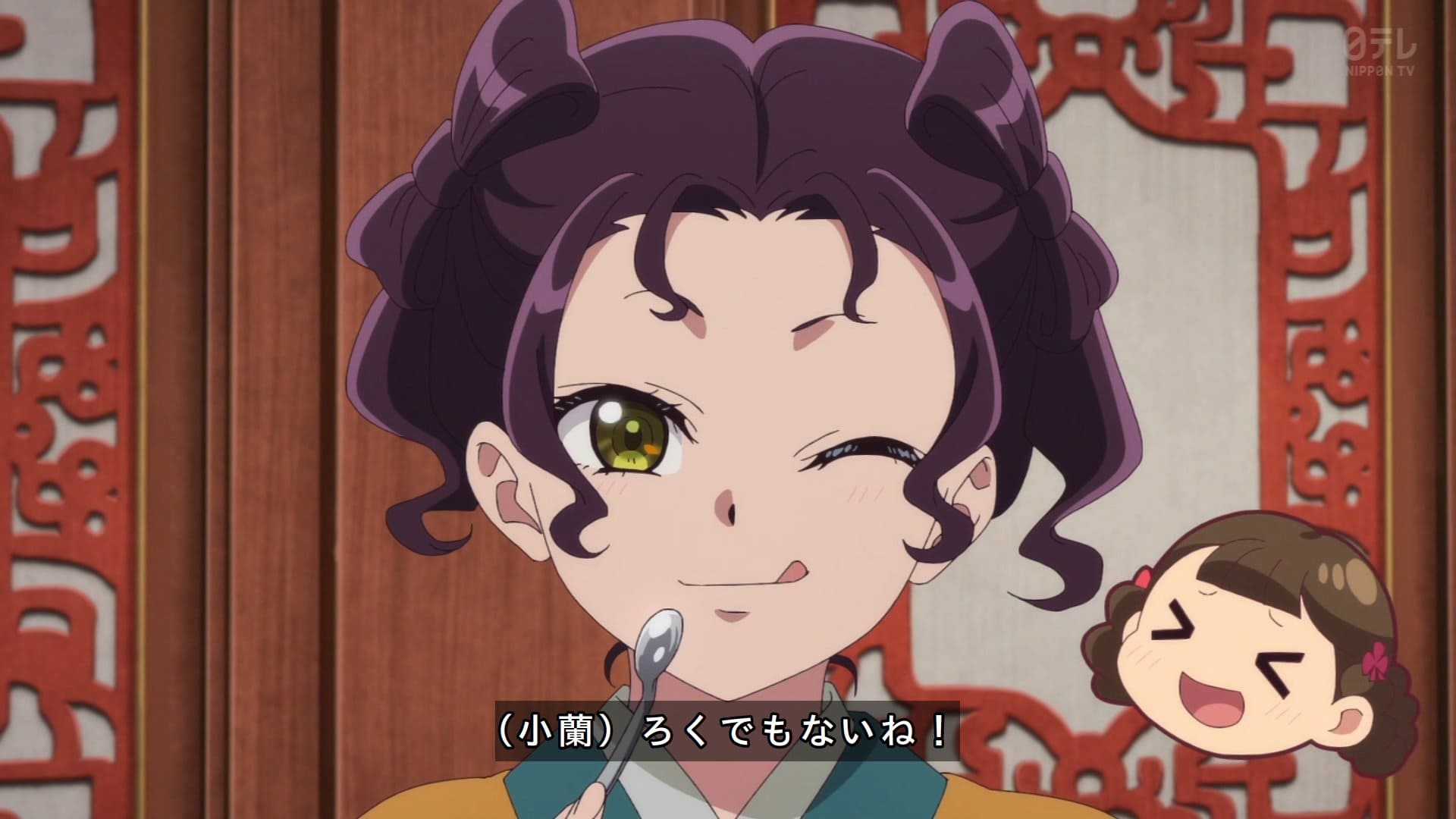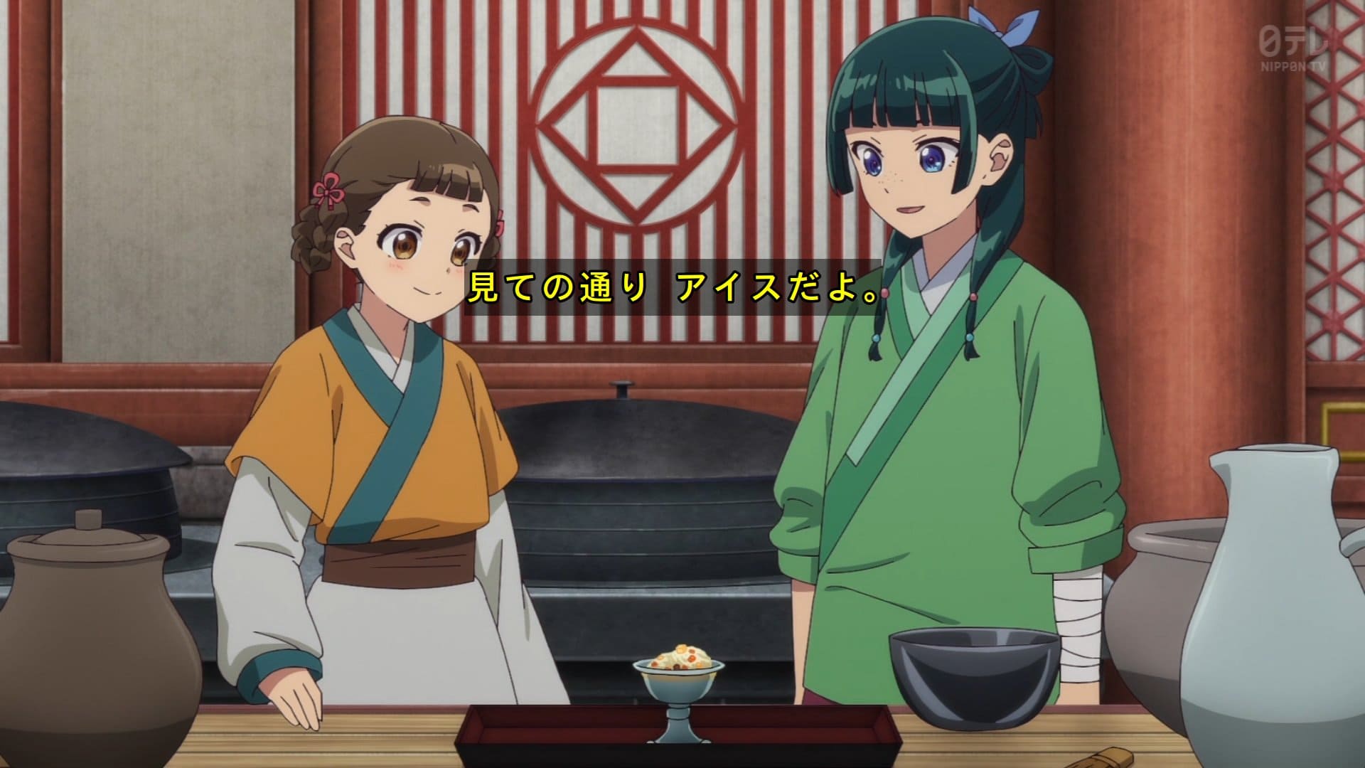 妃の氷壊した小蘭である。楼蘭妃に届ける奴だった。で猫猫が別のものを作るってよ。1時間で。