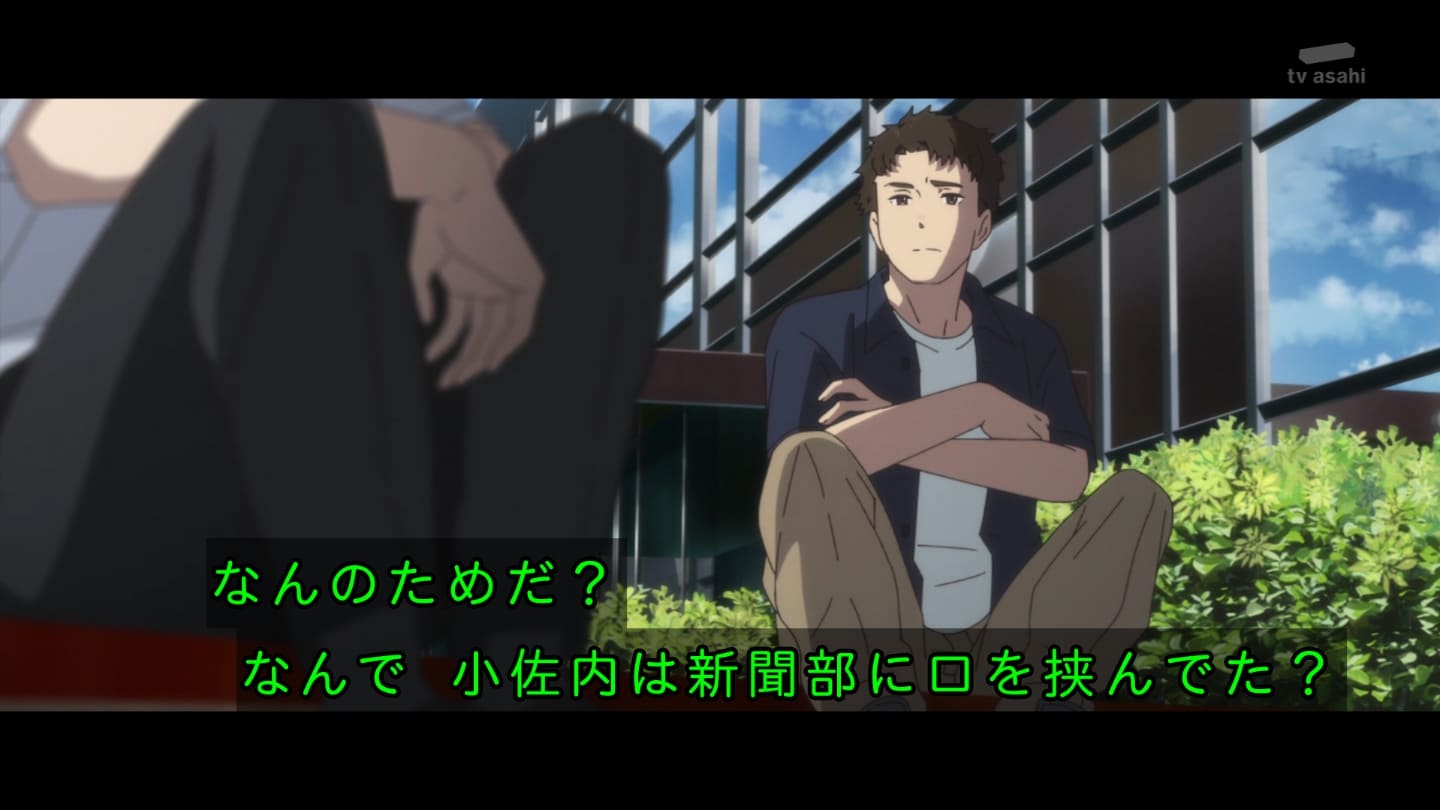 門地くんの記事を馬鹿にしたらダメよね。しかも健吾の忠告も思い切り無視した結果瓜野くんおしまいやね。瓜野くんのお兄さん消防士なのか。種明かしの記事か。生徒指導部に法則性を出してたらまずい立場に追い込まれた可能性があった模様で。新聞部が模倣犯を生み出したとか。で健吾さん受験あるから部長引退するってよ。新聞部はお前って誰だろ。門地?瓜野?分からん。それと五日市くんか。