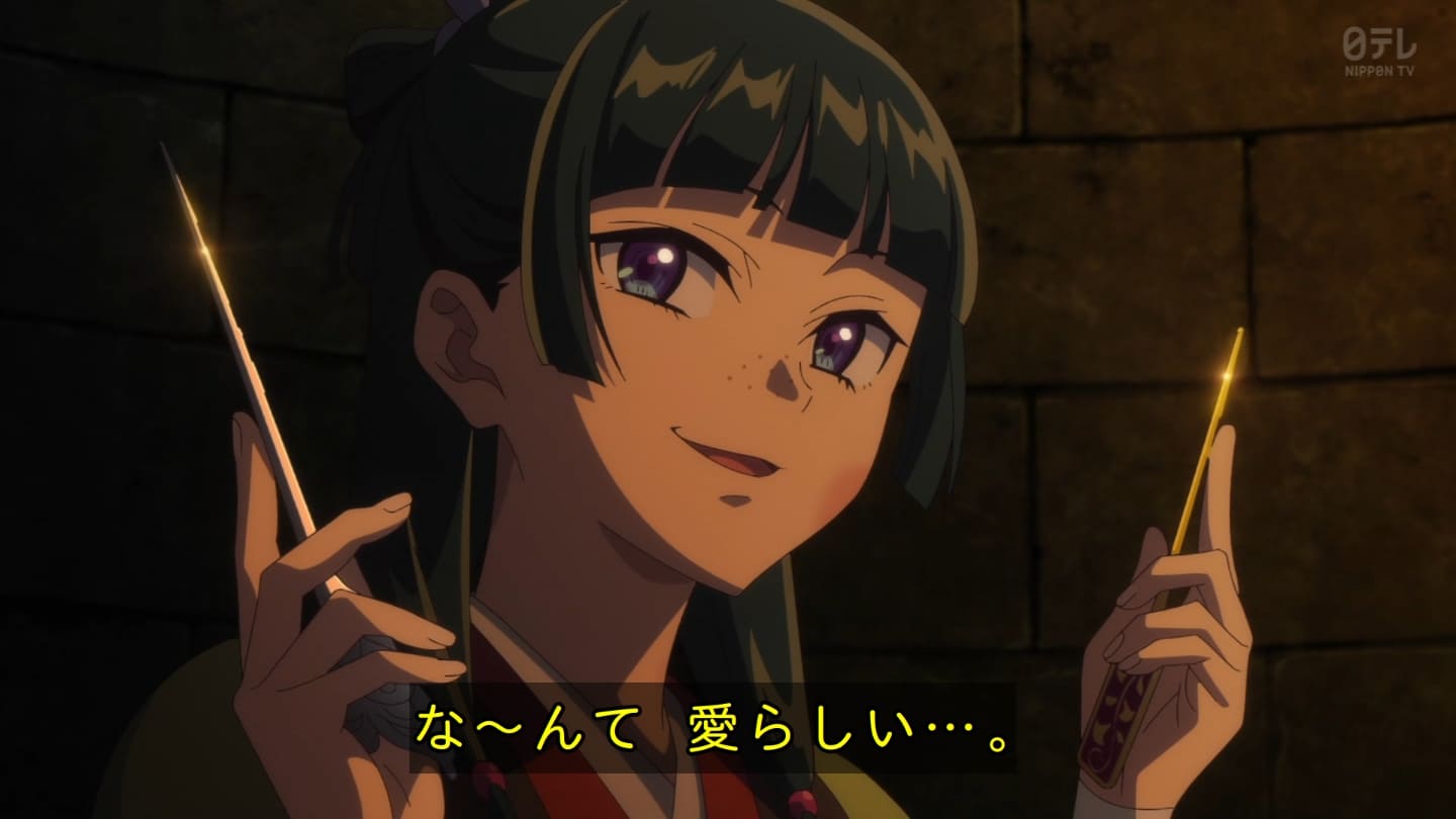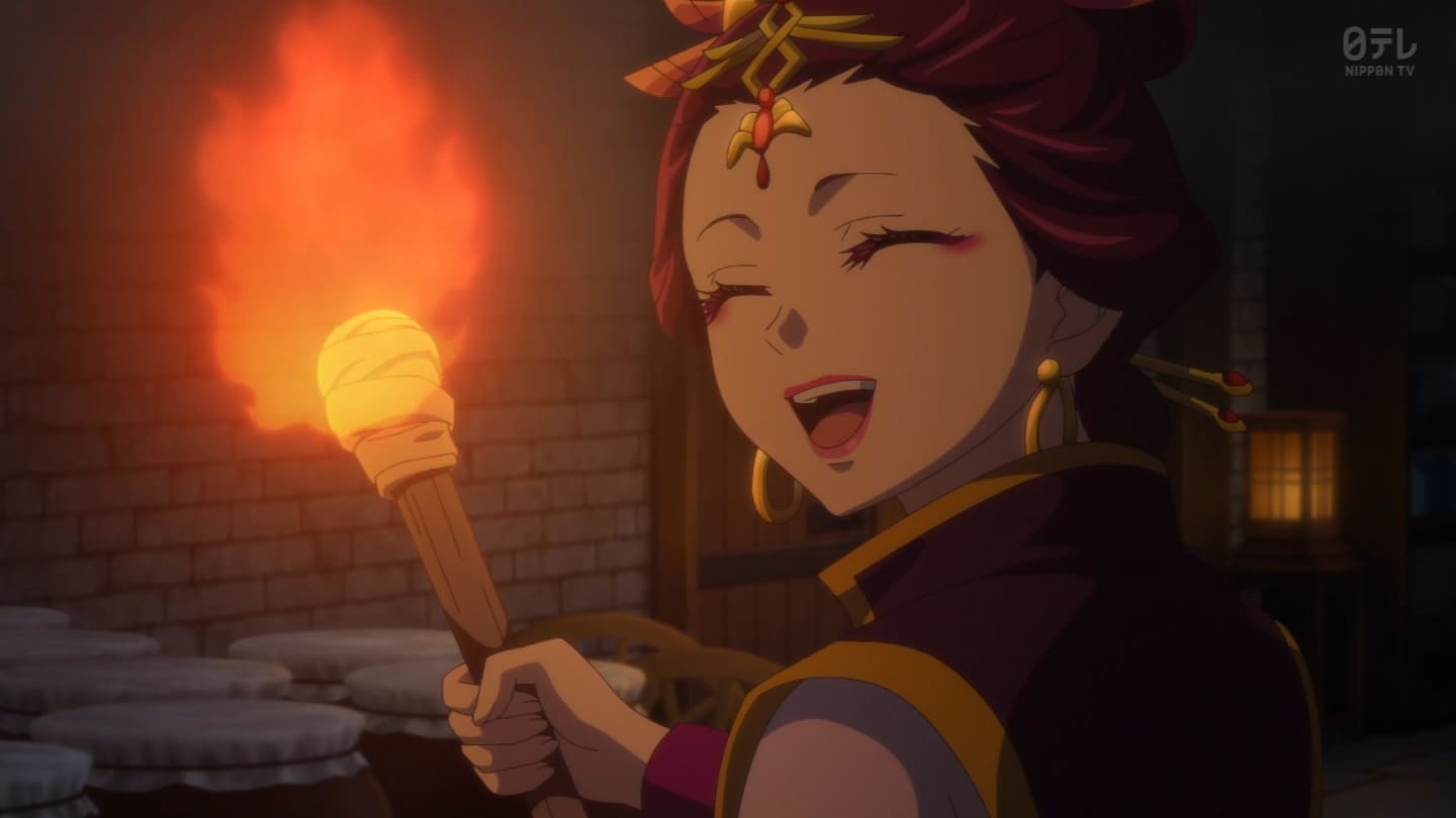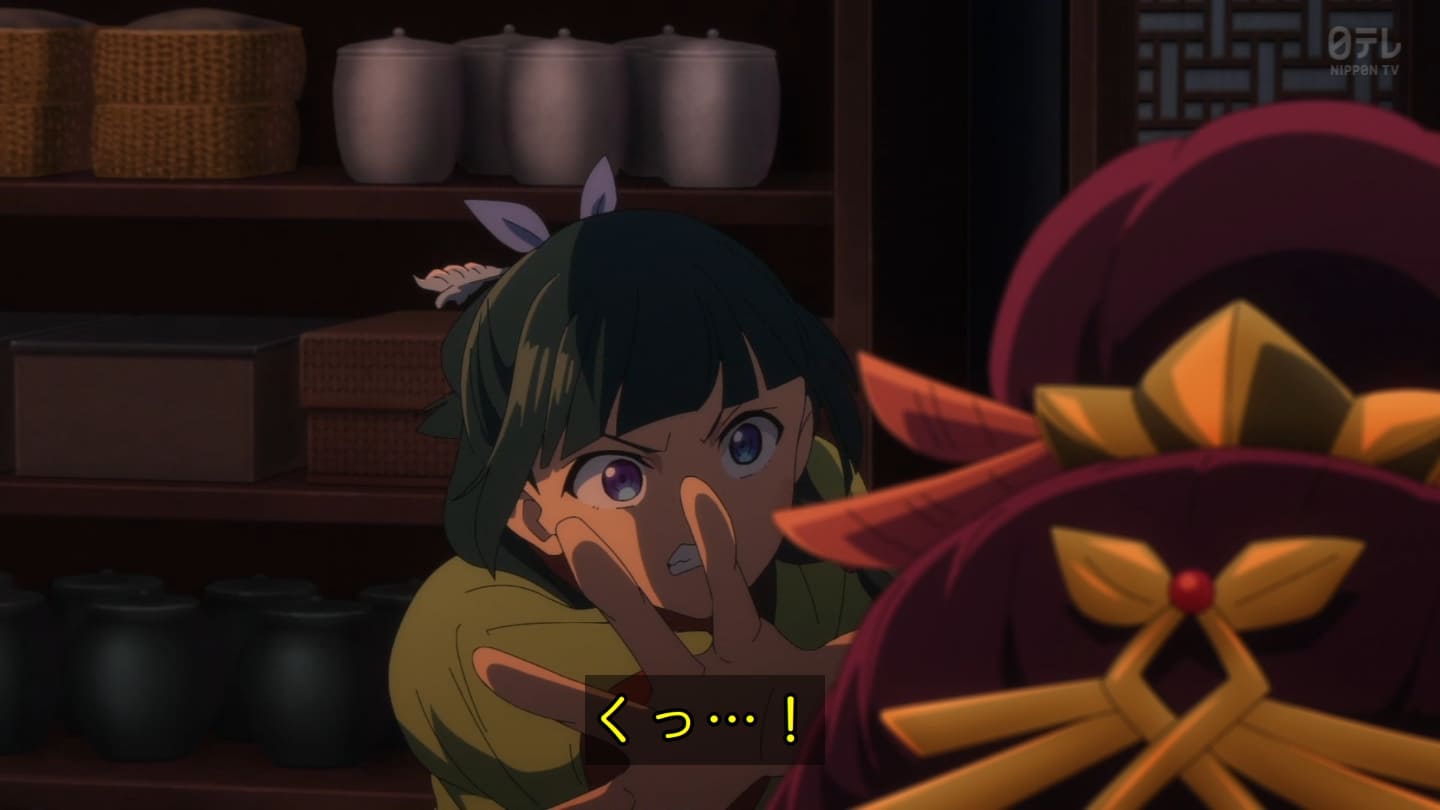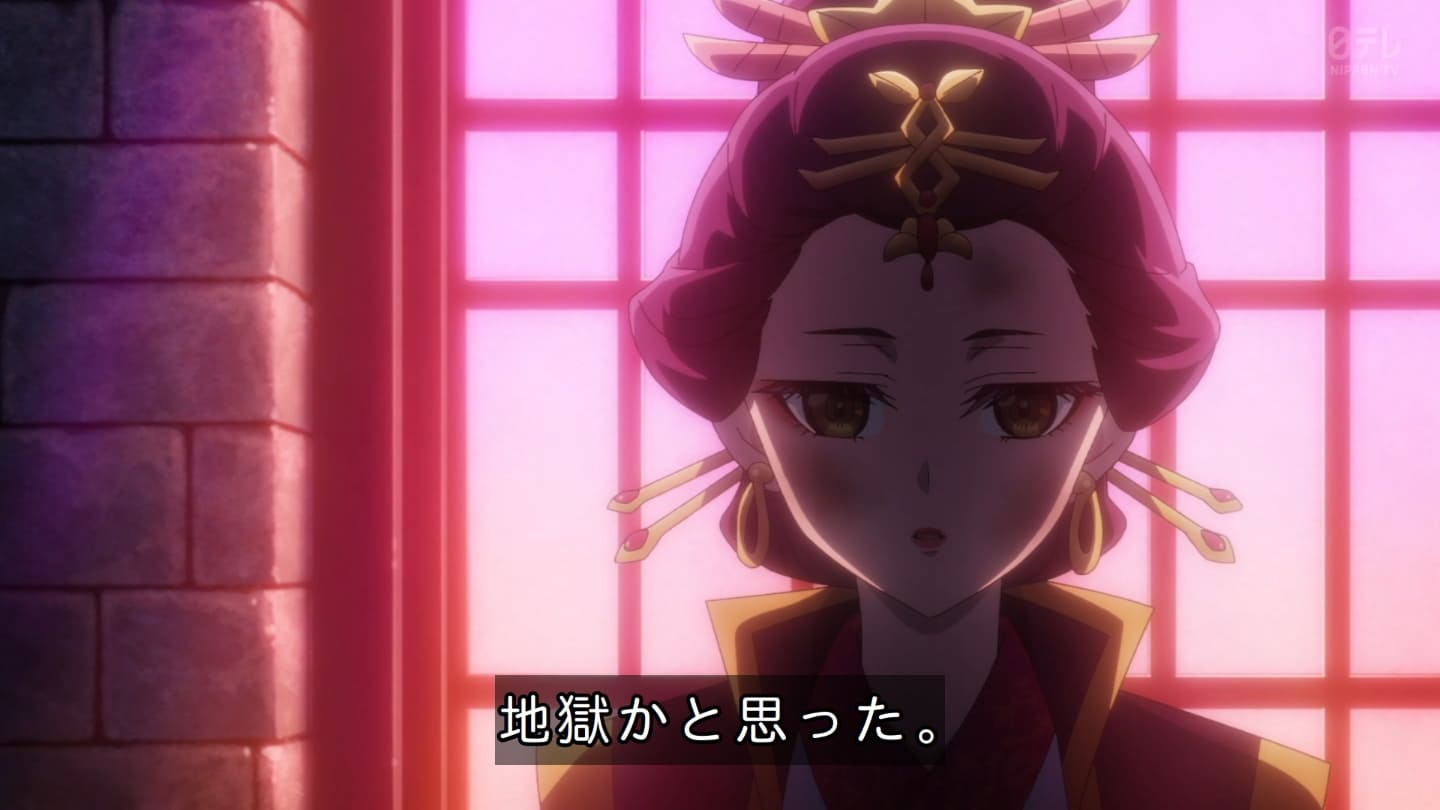 オスガキくんの騒ぎで翠苓さんが内々で収めようとしたら神美とかいうクソBBAが罰を与えようとするから結果猫猫が自ら名乗り出る事に。どっちにしてもダメやろ。タイボンって何だろうね。毒ヘビとかを牢内で放つ訳だけど猫猫には逆効果というか効果なしというか。でかば焼き喰ってたら見張りの兄ちゃんに助けられて火薬庫に来たら楼蘭妃が火を放ってた。祖母大宝かよ。大宝の娘が翠苓の母親か。皇族の血ね、先帝の方の。王母の流れを汲む子昌の子供楼蘭。オスガキたち毒殺されてた。早ない?響迂くんも中に。