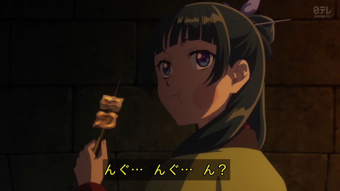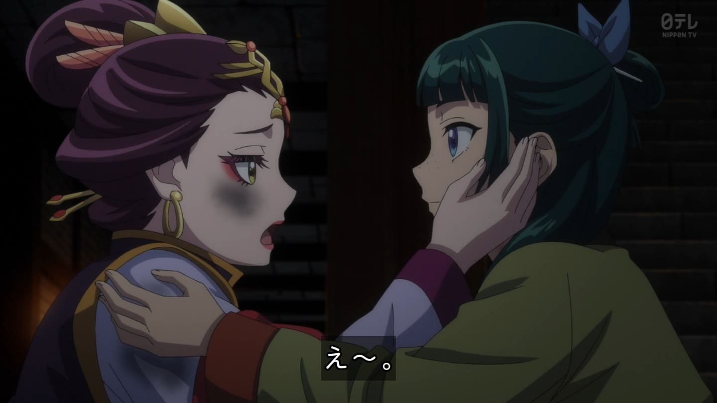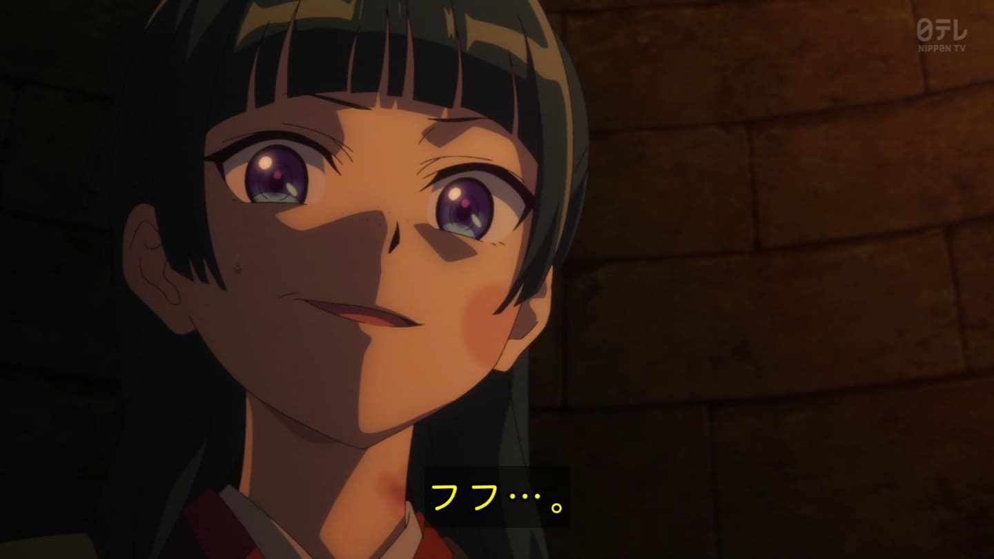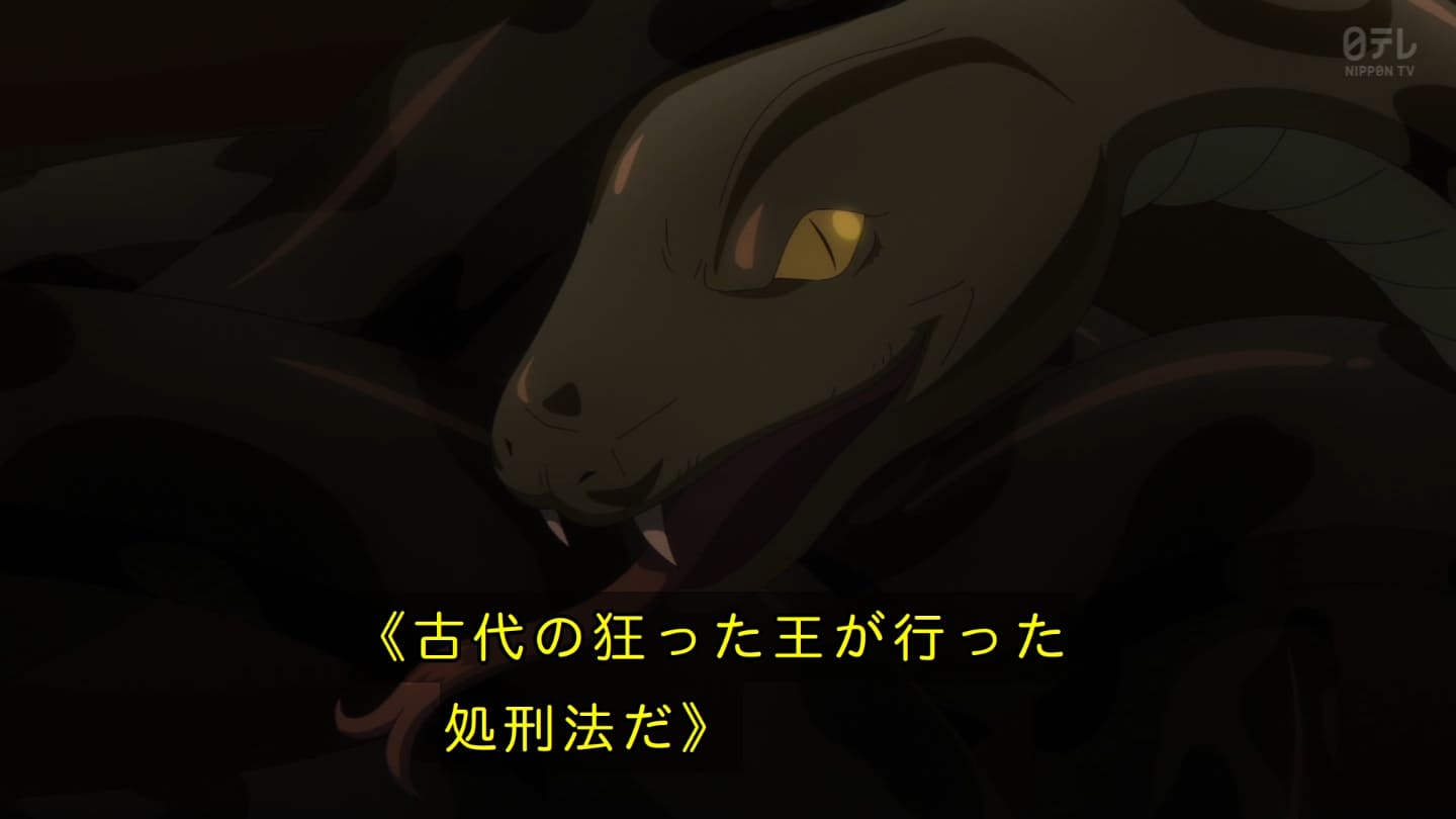 オスガキくんの騒ぎで翠苓さんが内々で収めようとしたら神美とかいうクソBBAが罰を与えようとするから結果猫猫が自ら名乗り出る事に。どっちにしてもダメやろ。タイボンって何だろうね。毒ヘビとかを牢内で放つ訳だけど猫猫には逆効果というか効果なしというか。でかば焼き喰ってたら見張りの兄ちゃんに助けられて火薬庫に来たら楼蘭妃が火を放ってた。祖母大宝かよ。大宝の娘が翠苓の母親か。皇族の血ね、先帝の方の。王母の流れを汲む子昌の子供楼蘭。オスガキたち毒殺されてた。早ない?響迂くんも中に。