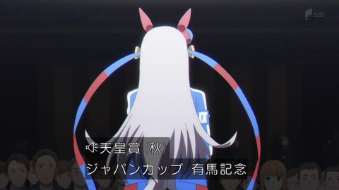 10人のウマ娘にマークされるオグリ。信長包囲網かな。ヤエノムテキにとってタマちゃんって先輩なのか。サクラチヨノオーは日本ダービーで足痛めてたのね。かわいい。でも大外からのオグリ圧勝だった。先輩たちイジメイクナイ。
