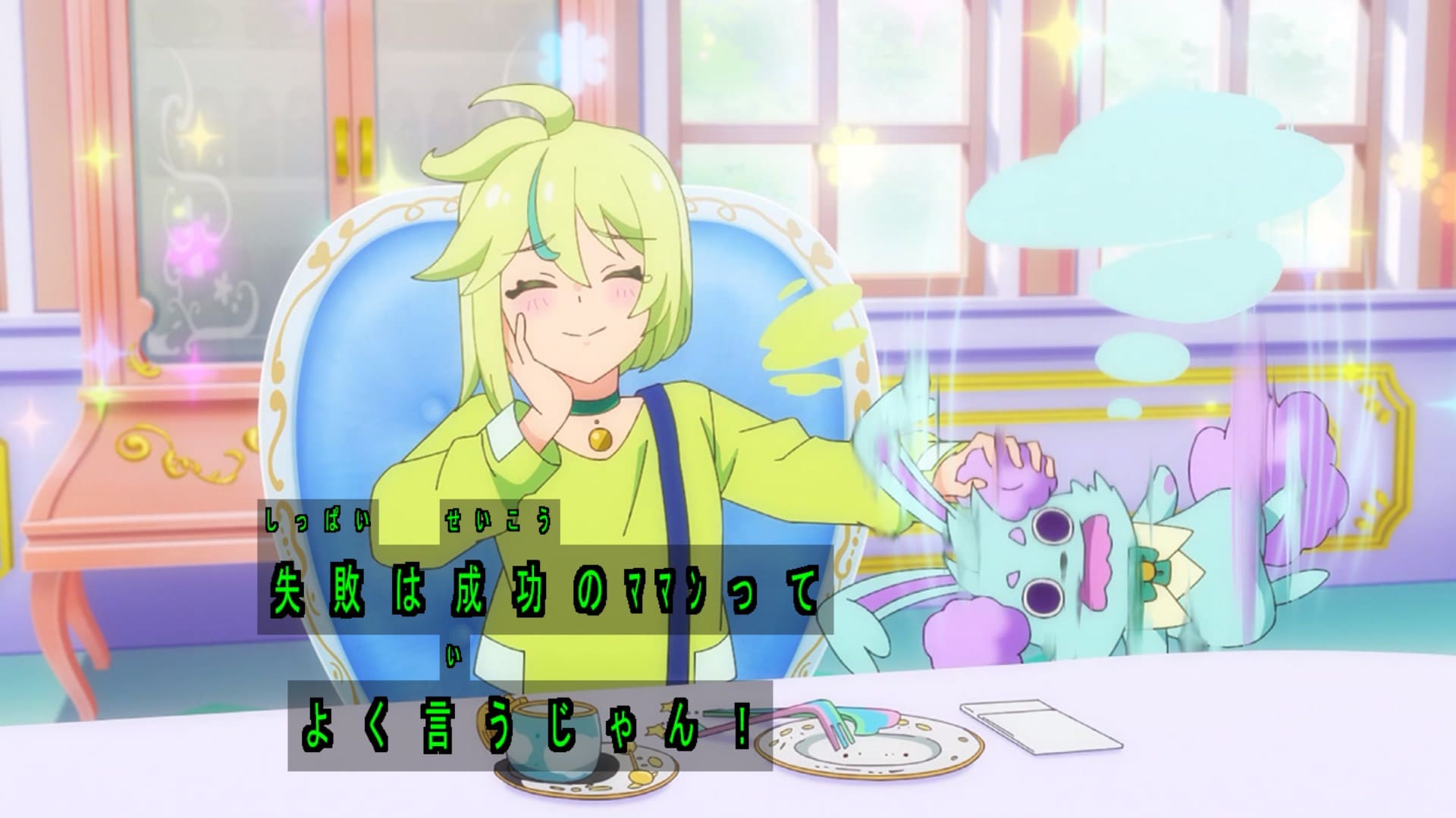 マカロンキチ過ぎてついつい餌付けしたくなるかがりちゃん。お嬢様っぽい雰囲気だったのにかがりちゃんのイメージが大きく変わるな。でも損なうというより好感度が爆上がりですわ。見た目の華やかさに反して超普通の女の子だったのも良かった。変身バンクはジールが一番えっちなのにね。三人で必殺技、決めポーズで一人だけズレるの大好きw