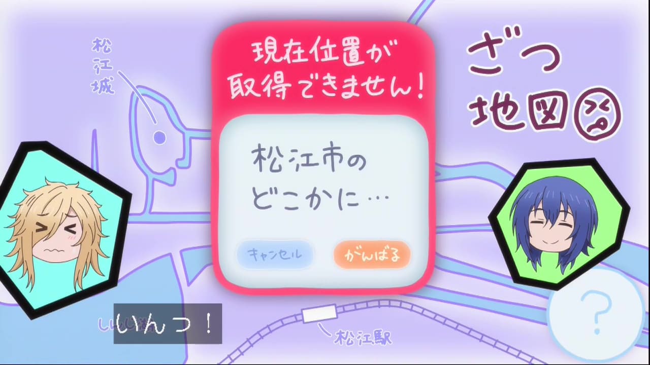 松江駅に向かおうとバスに乗り込んだら全然違う所へ行ってた二人。まあ島根ええトコだから事件に遭遇する事はあんまないやろ。岡山とか山口ってヤバい県にさえ行かなければ、ね。