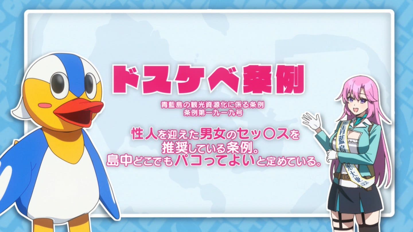 しかもセックス対象が恋人じゃなくてほぼ全員、乱交しないといけないってのがダルいわな。違反したら三角木馬みたいなバイブ?刑ぽい。OPは凄く動くしえっちだね。でもおバカギャグアニメっぽいのがアレ。島はハートマーク。良いところに住んでるね。四六時中セックス出来るけど避妊しないと駄目なのもダルいな。学校は美少女ばっかだけど男も普通にいる、共学なのがなぁ。俺得修学旅行みたいに一対大多数の美少女の方が。でもビッチっぽいのに処女な奈々瀬ちゃんや妹麻沙音ちゃんはかわいいし人気出そうだな。